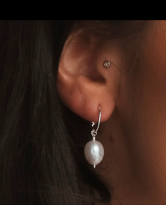 Classic White Pearl Drop Hoops