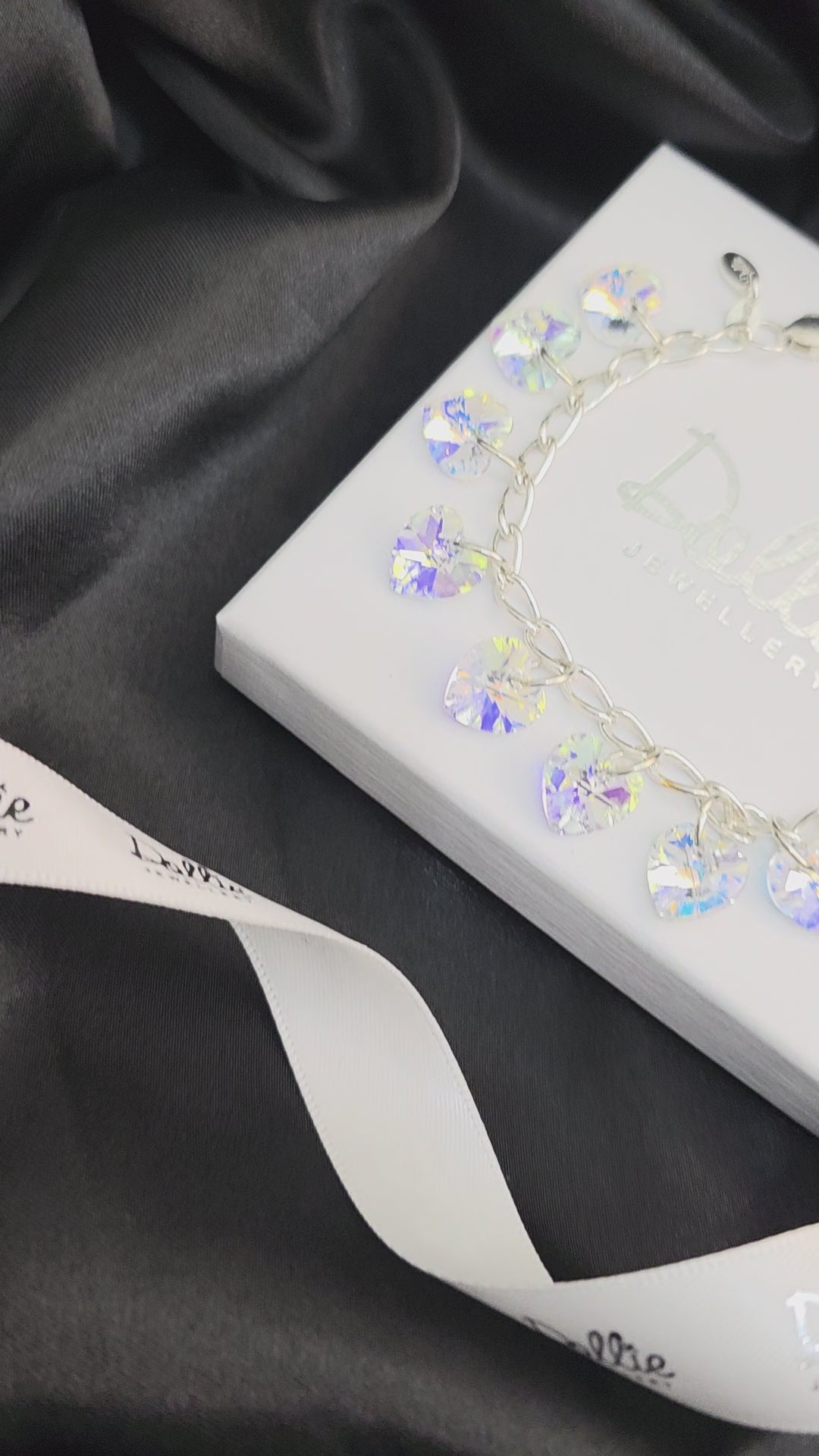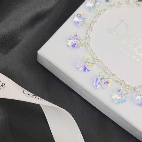 A must-have for any jewellery collection! Made with Sterling Silver links and featuring 14 beautiful AB crystal hearts, this bracelet one of the most eye catching sparkly bracelets we have ever created. If you want to wow everyone this bracelet will definitely catch attention!