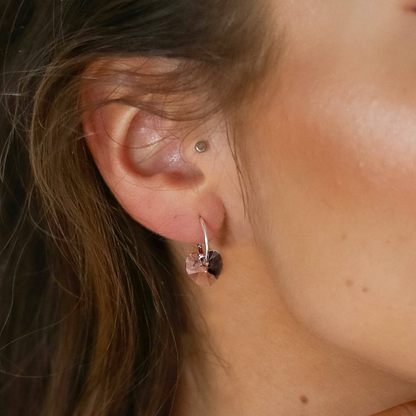 Get ready to shine with these Summer Sunset Silver Hoops! With a touch of pink and just the right amount of sparkle, these hoops are the perfect match for the coordinating necklace. Beautiful and playful, these hoops will add a touch of fun to any outfit.