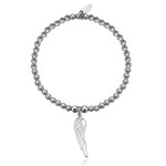 Keep loved ones near and with you always with this simple cut out style wing charm. A gorgeous angel wing charm paired with twinkle 'disco ball' bead accents create the perfect bracelet for a present or a little treat for yourself.