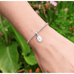 A symbol of motherhood and maternity. This bracelet features the symbol Madonna, beautiful detailed with an oval setting. Perfect for mum's and mum's to be. Available in adults and childrens size...match with your little one!